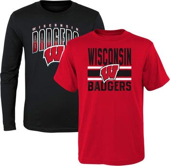 Preschool Black/Red Wisconsin Badgers Fan Wave Short & Long Sleeve T-Shirt Combo Pack