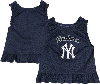 Get your little one ready for game day fun with this adorable New York Yankees Playground Dress. This adorable dress features playful ruffle details on the sleeves, collar, and hem, adding a touch of whimsy to your little one's game day look. The sublimated animal print adds a fun and stylish element, while the screen-printed New York Yankees logo proudly displays their team spirit.