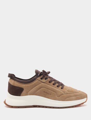 This lace-up Outline sneaker in taupe suede is enriched by matelassé-effect stitching on the upper. A debossed Bally logo decorates the side.