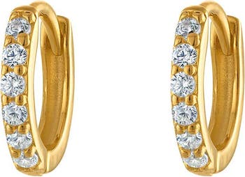 Gold Pavé Six Mm Huggie Hoop Earring