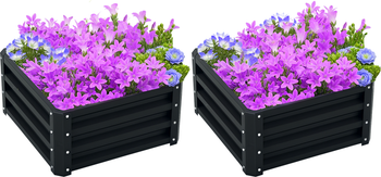 - Set of Two: Our two planters for outdoor plants provide ample growing space with their tough and stylish metal design.Open Bottom: This raised garden box set has an open bottom so that water can drain quickly without buildup, and your plant's roots aren't restricted and have plenty of room to grow into the ground.Weatherized Material: The garden planters have galvanized steel material that does not warp like wood and is finished with a water-resistant coating for longevity and durability.Easy to Assemble: The easy to assemble design of this metal raised planter box set gets your garden up and running quickly so you can invest more time in growing.Elevated Garden Bed Information: Overall Dimensions: 23.5" L x 23.5" W x 12" H. Side Panel Dimensions: 20.75" L x 11.75" W.