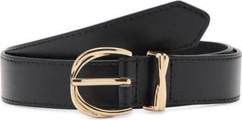 Polished hardware adds a centerpoint of light to this sleek belt made from smooth faux leather.
