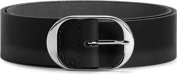 A classic 100% leather belt with an oval shaped solid brass buckle, designed for daily wear by men and women.