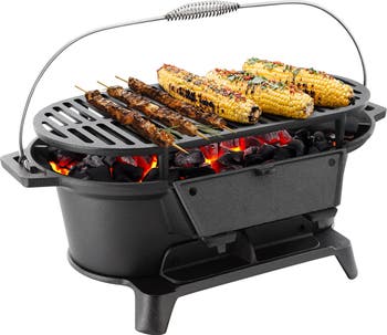 Cook anywhere with confidence using this durable cast iron camp portable hibachi grill and outdoor stove by MegaChef, designed for campers, backyard cooks, and open-fire enthusiasts. Built from heavy-duty cast iron, this grill delivers excellent heat retention and even cooking performance, making it ideal for everything from sizzling steaks to slow-cooked meals. The unit comes pre-seasoned and ready to use, so you can start cooking right away. Its versatile design features a removable raised grill plate for perfect sear marks, while the pull-open front door lets you safely add charcoal or wood without interrupting the cooking process. An adjustable bottom vent gives you precise control over airflow and temperature, ensuring consistent results every time. Designed for true outdoor use, this Hibachi grill is perfect for camping, picnics, tailgating, and backyard cooking. The sturdy metal handle makes it easy to carry and reposition, while the compact size comfortably serves 2-6 people, making it ideal for small groups and family adventures. Easy to maintain, this cast iron grill requires hand washing as needed to preserve its seasoned surface and long-lasting performance.