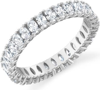 Pront-set oval-cut cubic zirconia illuminate this glamorous eternity-band ring plated in polished platinum or warm 18-karat gold.