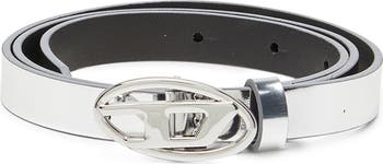 Powered by Y2K nostalgia, the haute-denim brand's superhero-esque Oval D logo is boosted to bold proportions in an enameled buckle on this leather-backed belt with a glossy, mirrored finish.