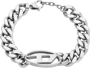 Powered by Y2K nostalgia, DIESEL's superhero-esque Oval D logo is minimized to diminutive proportions in an enameled pendant on this chunky curb-chain bracelet—proof that small can still pack a mighty style punch.