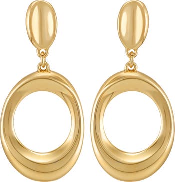 Discover contemporary elegance with these hoop drop earrings. Designed with a clean, fluid aesthetic, they feature a smooth, polished finish that catches the light beautifully. The unique open oval design creates a sophisticated silhouette, making them versatile enough to complement a variety of necklines and styles. Perfect for adding a touch of modern luxury to your everyday look or for a polished evening out.