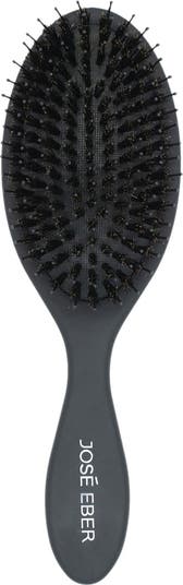 JOSE EBER: BRUSH: OVAL - This Oval Brush is a part of The Professional hair brush Series and used in professional salons. This Oval Brush contains 100% natural boar hair that enhance hair shine by sealing the outer layer of the cuticles and distributing the scalp's natural oils to the hair tips. It improves the quality and elasticity of the hair. The nylon bristles provide the perfect grip for effective brushing without causing tangles or pulling. They are gentle on both the hair and the scalp. The soft cushion follows the contours of the scalp during brushing, promoting not only blood circulation but also reducing hair breakage by applying even pressure to the hair. Additionally, the bristles provide a pleasant scalp massage. Suitable for all hair types—straight, wavy, curly, or coily—the Jose Eber Oval Brush is a versatile styling tool for everyone. It’s designed to minimize hair stress and promote stronger, healthier hair. Always begin slowly brushing from the ends upward to prevent knots or breakage. Keep brush clean by removing hair with a comb and rinsing with warm water and soap. KEY FEATURES: 100% natural boar hair with nylon bristles, gentle for hair and scalp, reduces hair breakage, ideal for all hair types, part of the professional series and used in professional salons.