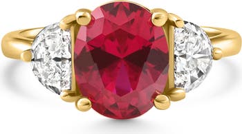 Oval Ruby & Half Moon Diamond Ring 14k Gold Lab Grown