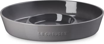Get the party started with the vibrant glaze and clever design of this durable stoneware platter with plenty of room for your favorite chips and tasty dips. The generous well is sized perfectly to hold a 24-oz. mini cocotte—sold separately—for serving warm dishes.