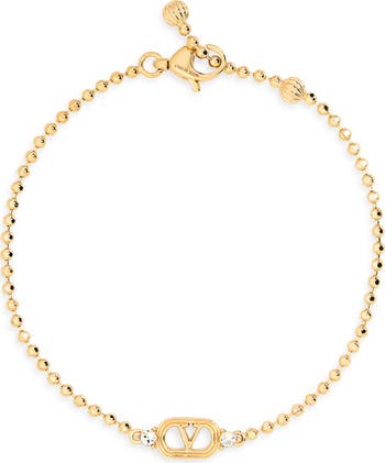 Two sparkling Swarovski® crystals hug the VLOGO pendant on this bead-chain bracelet that delicately encircles the wrist.