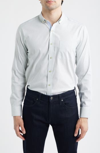 Patterned in neat stripes, this button-up reads polished from the first button to the last with just enough stretch for daylong comfort. The collar is finished with hidden buttons to keep it sitting right all day, and the non-iron fabric resists creases and wrinkles for travel days that still look put-together.