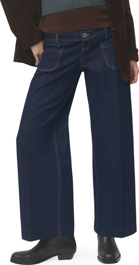 Look and feel good throughout the trimesters in patch-pocket wide-leg jeans featuring a superstretchy over-the-bump band for comfortable support.