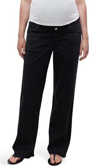 Look and feel good throughout the trimesters in raw-hem wide-leg jeans featuring a superstretchy over-the-bump band for comfortable support.