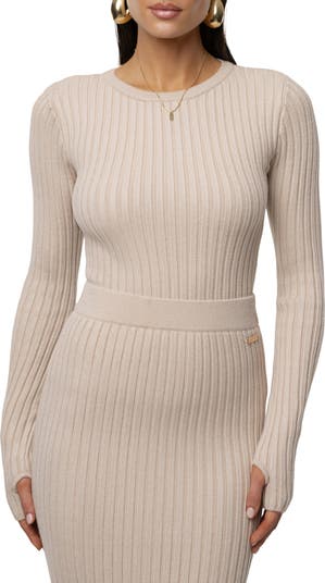 Meet your new wardrobe staple, our Overcast Ribbed Top, designed for effortless style and ultimate versatility. This essential top features a classic crew neckline with long sleeves and a fitted silhouette that hugs your curves in all the right places. Crafted from a soft, ribbed knit fabric, it provides both luxurious comfort and a touch of sophisticated texture to any outfit. Adorned at the waist with a dainty JLUXLABEL accent in a gold-tone finish.