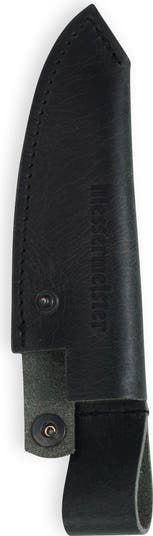 Carry your Overland Chef 4.5" Utility Knife with confidence in the Messermeister Leather Belt Sheath. Handcrafted in Holland from premium oil-tanned full-grain leather, this sheath features a rustic matte black finish that’s as tough as it is timeless. Custom-fit for a snug, secure hold, it’s built with a reliable snap closure and a low-slung belt loop for easy, accessible carry wherever your adventures lead. Durable enough for serious outdoor use and crafted with the meticulous quality Messermeister is known for, this sheath ensures your blade is always within reach and ready for action. (Knife not included.) Built for explorers. Designed for life. 100% Messermeister quality.