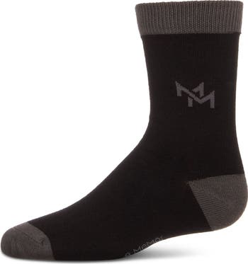 What's the well-dressed boy wearing this season? These classy boys' crew socks, natch. They come in our premium blend: cotton-rich for soothing softness, with spandex for comfortable stretch. Plus, they feature our elegant double-M graphic, knit right into the yarns for fade-proof color and clarity.