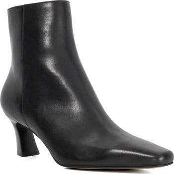 A sculptural heel and snip toe intensify the modern sophistication of this versatile block-heel bootie.