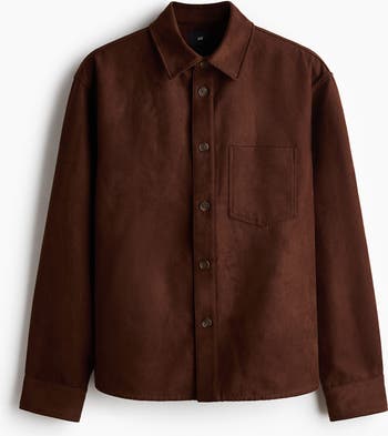 Overshirt with a soft, napped finish featuring a turn-down collar, buttons down the front, a patch chest pocket and a yoke at the back. Long sleeves with buttoned cuffs. Slightly rounded hem.