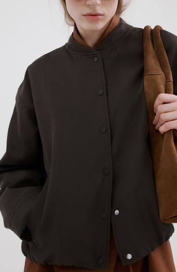 A slightly oversized silhouette puts a subtle spin on a monochrome bomber jacket that's a street-style classic.
