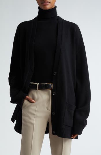 Sumptuous cashmere yarn lends lightweight warmth to this oversized cardigan edged with classic rib trim and set with handy patch pockets.