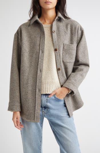 Cloud-soft cashmere-and-wool yarns refined at a centuries-old Scottish mill offer exceptional warmth and luxe comfort in this oversized overshirt with a curved high-low hem.