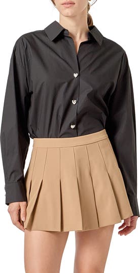Dropped shoulders enhance the relaxed fit of this longline shirt cut from crisp cotton and fronted with sparkling heart buttons.