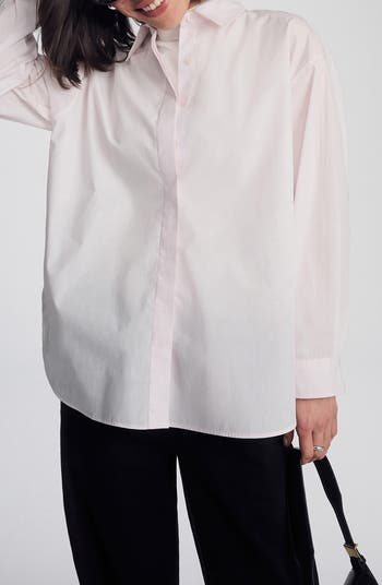 This crisp cotton button-up with a chic French placket is anything but ordinary thanks to its bold oversize silhouette.