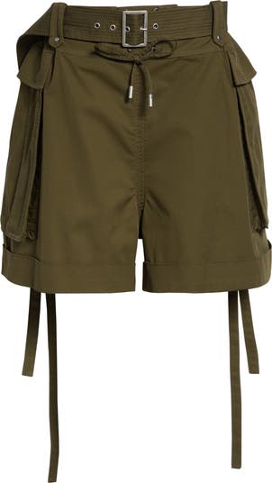 These oversized, belted cargo shorts shown on the spring '26 runway are crafted from practical cotton twill and designed with corset-like lacing at the waist in true McQueen style. A trapunto-stitched belt cinches the look, while deep cargo pockets trail long ties casually down the legs.