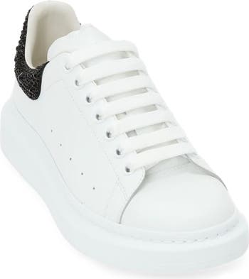 A chunky, leopard-debossed sole gives a major style boost to a signature sneaker made in Italy from leather and finished with a crystal-embellished contrast accent.
