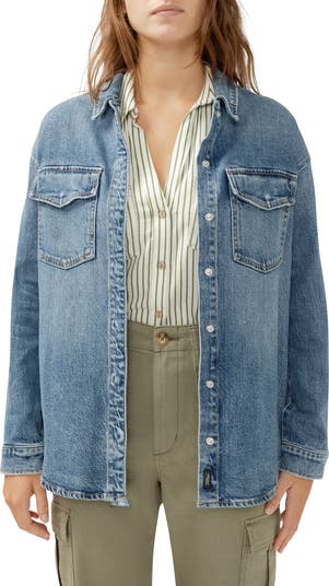 Made from supersoft low-stretch denim, this casual-cool shirt-jacket features an elongated, oversized fit for relaxed, easy layering through the seasons.
