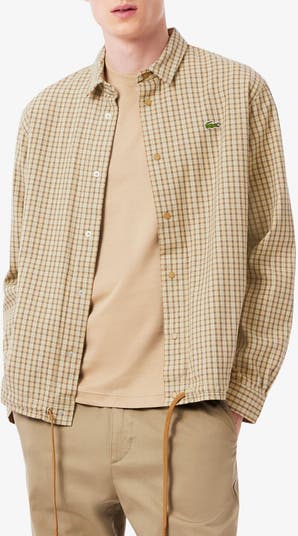 Woven in crisp plaid from a soft cotton blend, this snap-front overshirt layers light warmth with a drawstring hem that cinches when the wind kicks up.