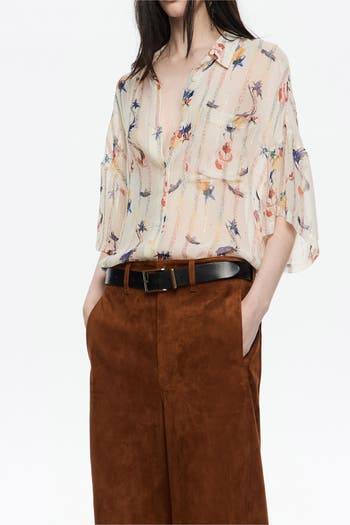 Bimba y Lola Oversize Flowers Scan Shirt, Main, color, Flowers Scan Ivory