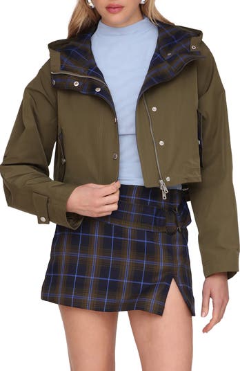 A classic, tactical design and a cropped and boxy silhouette make this hooded jacket the choice for on-trend styling on iffy-weather days.