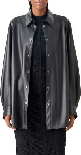 The Swiss label's clean-lined design codes informs this oversized shirt rendered in smooth lambskin and affixed with gleaming snaps. Subtly dropped shoulders lend to the roomy silhouette, while the sharp point collar lends a bit of structure.
