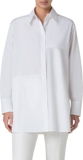 Pleated panels add unexpected texture to a breezy button-up shirt fashioned from airy cotton voile in an oversized silhouette. An inverted back pleat completes this structured yet spacious style.