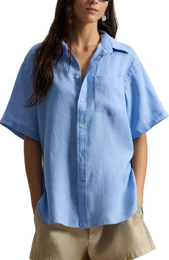 Airy linen keeps you feeling fresh and free in this oversized button-up shirt that’s as light as your weekend mood.