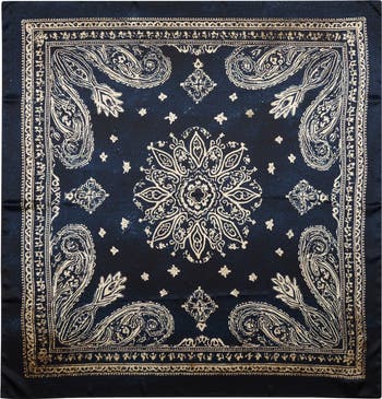 A telltale accessory of Chris Leba’s imagined American‑punk outlaw from the spring ’26 collection, the classic bandana is scaled to statement‑scale proportions in this oversized silk‑twill scarf patterned with the requisite paisley.