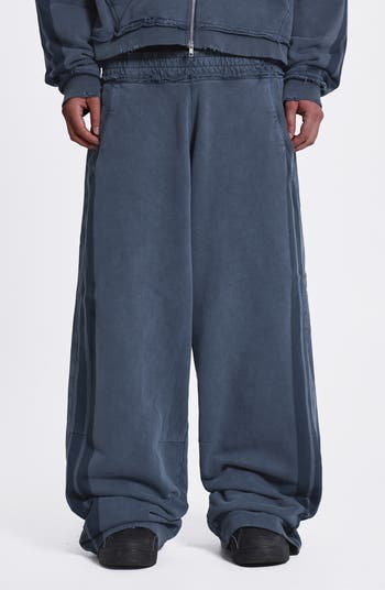 Oversize Sporty Stripe Denim Wash Cotton Sweatpants