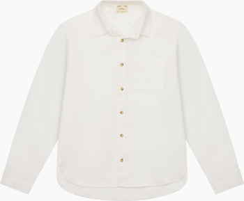 An oversized button-down shirt with a naturally relaxed fit and tonal emblem embroidery at the pocket.