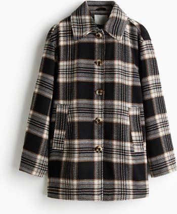 Knee-length, oversized coat in woven fabric. Collar, buttons down the front and welt side pockets. Dropped shoulders and long sleeves. Lined.