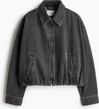 Short, oversized jacket in cotton denim with a collar, zip down the front and a yoke at the back. Dropped shoulders and long sleeves with buttoned cuffs. Welt front pockets and concealed elastication at the hem for a boxy silhouette. Unlined.