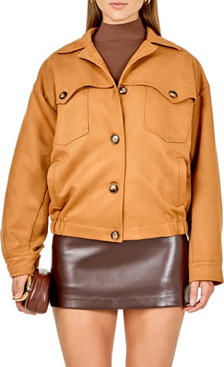 Buttery soft faux suede textures this slouchy oversized jacket finished with a gathered hem for an on-trend look you'll love.