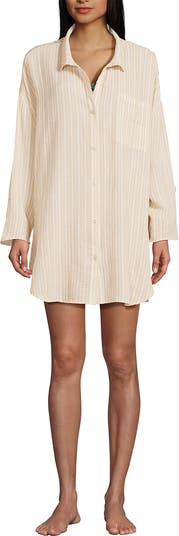 This cotton gauze cover-up shirt is the epitome of laid-back style and comfort. The lightweight fabric keeps you cool, while the button placket front and chest pocket offer a classic, easygoing design. With a shirt-tail hem and adjustable sleeves featuring roll tabs, this shirt provides extra coverage and versatility, allowing you to customize your look. Its oversized fit adds to the relaxed, comfortable feel, making it a perfect choice for casual beach days or warm-weather layering. Machine washable for easy care, this shirt is a versatile addition to your cover-up collection.