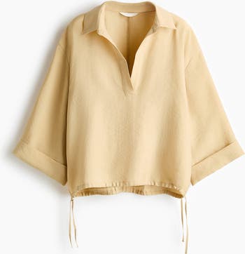Oversized blouse in a lyocell-blend weave with an open collar, dropped shoulders and wide, 3/4-length sleeves with sewn-in turn-ups at the cuffs. Narrow drawstring at each side of the hem for an adjustable fit.