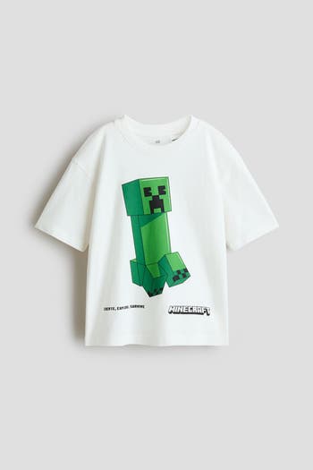 Oversized T-shirt in soft, printed cotton jersey. Ribbed trim around the neckline and dropped shoulders.