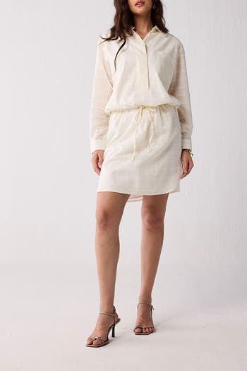 Breezy and oversized, this shirtdress is a beach-day essential (and also for summer days!). It features a straight collar, long cuffed sleeves, and an adjustable drawstring for an instantly contoured look. Throw it over your favorite swimsuit for lounging by the pool or for strolling by the sea in style.