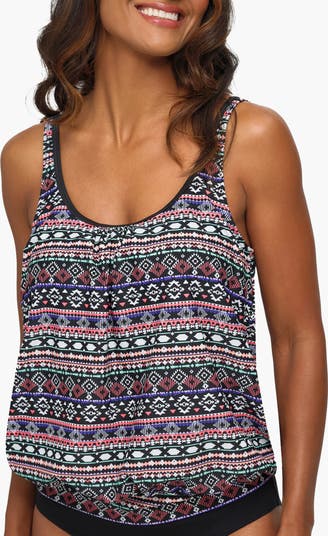Tankini top in a slightly oversized style with a form-fitting waistband.