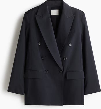 Oversized blazer in twill with peak lapels and a double-breasted front. Welt chest pocket, jetted front pockets with a flap, shoulder pads and long sleeves with decorative buttons at the cuffs. Single back vent. Lined.